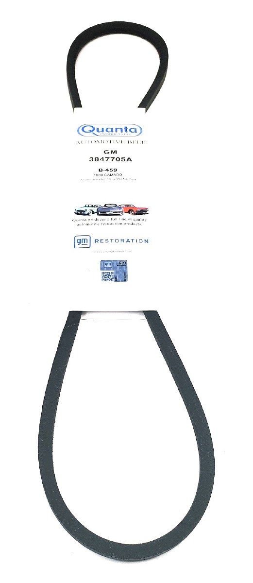 | Description | Air Conditioning belt. Our Restoration fan belts feature the original GM part# 3847705A embossed into the belt as original. Belt measures 15/32 x 57-1/2 inches. Heartbeat City's Air Conditioning belts are manufactured to exact GM blueprint specifications assuring you authenticity and high quality. Officially Licensed GM part. Made in the USA! You can find engine fan belt routing in the Factory Assembly Manual under UPC C60 C1. Applications: 1969 Camaro 396 With M40 Turbo 400, Chevy II Nova 396 With M40 Turbo 400, 1969 Chevelle El Camino 396 With M40 Turbo 400, 1969 Full Size Chevrolet 396 With M40 Turbo 400. |
