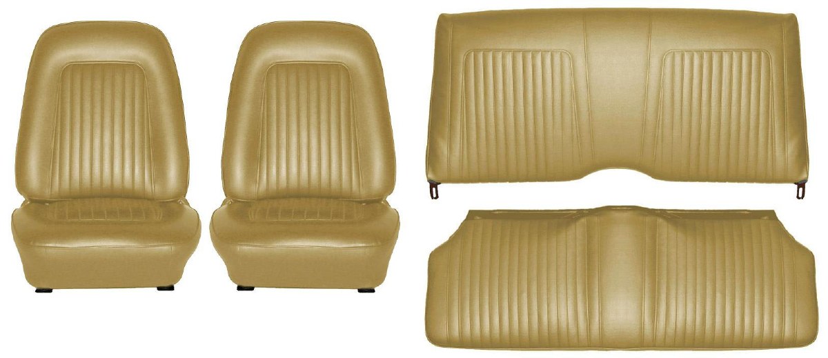 | Description | Camaro coupe standard gold interior seat cover kit. Includes front & rear seat covers. Seat covers are produced from Madrid grain vinyl with correct dielectric style inserts with vertical pleating. Our superior quality seat covers are produced by one of the industry's leading manufacturers. Heartbeat City recommends PUI's seat covers and door panels whenever possible. We are proud to offer their products on our website. All of our seat covers and door panels are Manufactured in the USA! |