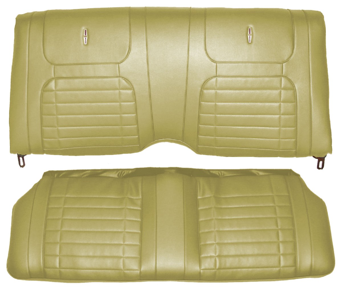 | Description | Camaro coupe deluxe interior ivy gold rear seat covers. Seat covers are designed with correct dielectrically sealed inserts featuring wide horizonal pleats and extra padding. Our superior quality seat covers are produced by one of the industry's leading manufacturers. Heartbeat City recommends PUI's seat covers and door panels whenever possible. We are proud to offer their products on our website. All of our seat covers and door panels are Manufactured in the USA! NOTE: Bucket seat Bowtie emblems are not included with seat covers. They are available under part# INT-1318. |