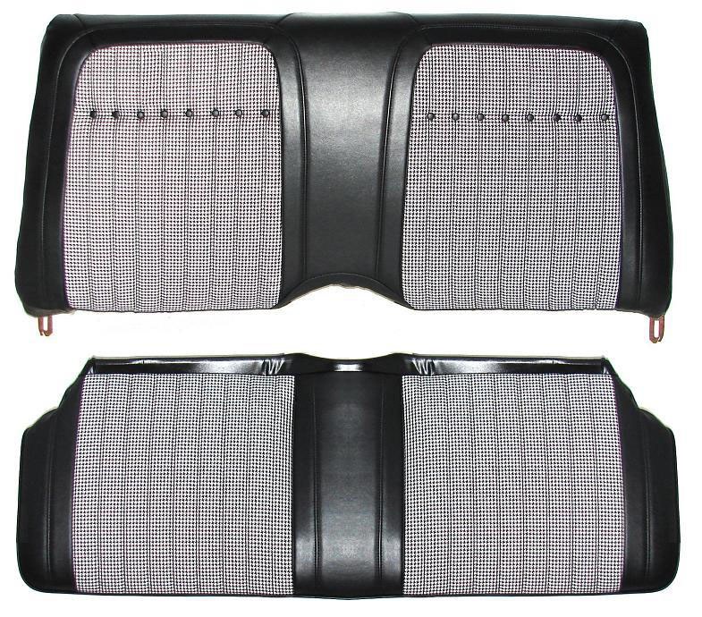 | Description | Camaro coupe or convertible deluxe interior black Houndstooth rear seat covers with fold down rear seat. Seat covers are distinguished by Houndstooth cloth inserts. The inserts feature vertically stitiched pleats just like the originals (covered seat buttons are included). Our superior quality seat covers are produced by one of the industry's leading manufacturers. Heartbeat City recommends PUI's seat covers and door panels whenever possible. We are proud to offer their products on our website. All of our seat covers and door panels are Manufactured in the USA! |