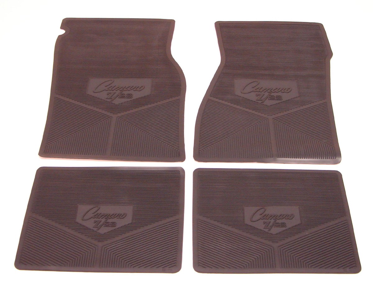 | Description | Camaro Z/28 dark blue rubber floor mats embossed with "Camaro Z/28" logo. Manufactured from heavy custom die-cut vinyl. These floor mats feature a deeply embossed logo and Patented Sure-Grip Anti-skid backing. Floor mats are very easy to clean. Made in the USA! Officially Licensed GM Restorations Parts. |