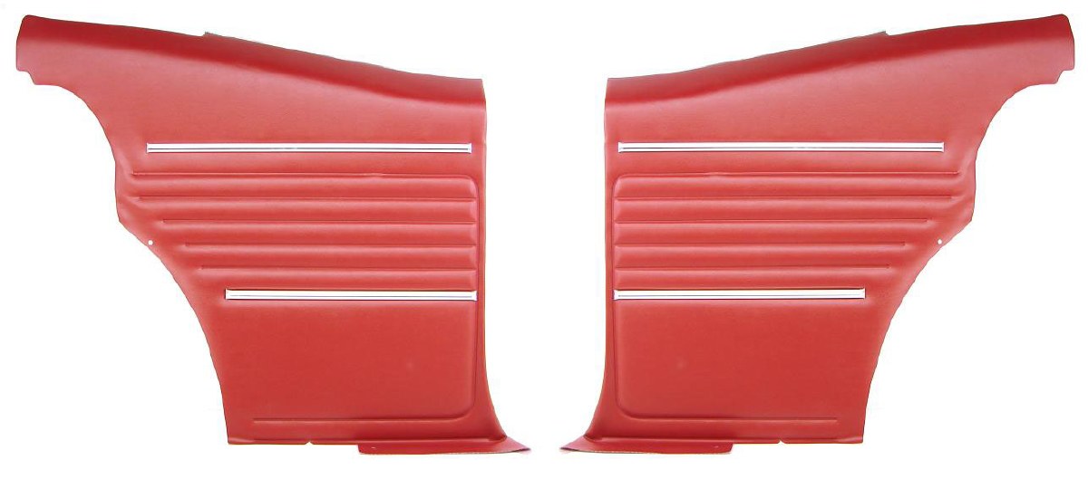 | Description | Camaro coupe OE style pre-assembled red standard interior rear quarter trim panels. Sold in pairs. Our OE style quarter trim panels are the very best on the market. Manufactured from correct Madrid grain panel with every dimension and measurement taken from original GM panels. You will notice these quarter trim panels have crisper more beveled pleats, improved moldings with correctly turned edge and the correct windowfelts attached for a cleaner look just like the originals. Order these panels for a superior fit and appearance. Our superior quality interior trim panels are produced by one of the industry's leading manufacturers. Heartbeat City recommends PUI's door panels, quarter trim panels, and seat covers whenever possible. We are proud to offer their products on our website. All of our seat covers and door panels are Manufactured in the USA! |