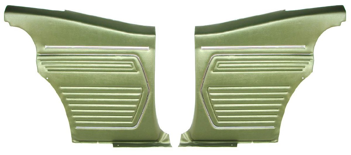 | Description | Camaro coupe OE style pre-assembled dark green standard interior rear quarter trim panels. Sold in pairs. Our OE style quarter trim panels are the very best on the market. Manufactured from correct Madrid grain panel with every dimension and measurement taken from original GM panels. You will notice these quarter trim panels have crisper more beveled pleats, improved moldings with correctly turned edge and the correct windowfelts attached for a cleaner look just like the originals. Order these panels for a superior fit and appearance. Our superior quality interior trim panels are produced by one of the industry's leading manufacturers. Heartbeat City recommends PUI's door panels, quarter trim panels, and seat covers whenever possible. We are proud to offer their products on our website. All of our seat covers and door panels are Manufactured in the USA! |