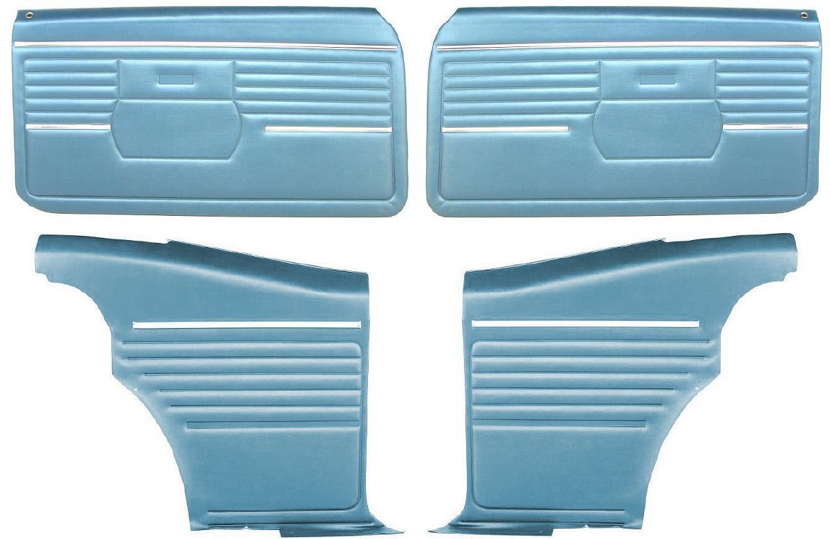 | Description | Camaro coupe pre-assembled medium blue front door panels & rear side panel kit for standard interior. Pre-assembled doors panels come with chrome-like trim moldings, a strong metal top rail. The rear side trim panels come with a hard ABS plastic top rail. All pre-assembled front door panels and rear side panels come with high quality windowfelts pre-installed. Panels are manufactured from correct Madrid grain and are produced by one of the industry's leading manufacturers. Heartbeat City recommends PUI's door panels, rear side panels and seat covers whenever possible. We are proud to offer their products on our website. All of our seat covers, front door panels and rear side panels are Manufactured in the USA! Heartbeat City offers 3 different levels of interior door panels and rear side trim panels. Basic door panels: Unassembled panels which require all moldings, window felts, trim and emblems. Pre-assembled door panels (PAD): which includes moldings, Mylar trim and pre-installed window felts. Pre-assembled Platinum Edition door panels (PED) OE: Finest quality pleating, detail and hard ribbing as original. These panels also include moldings, window felts, Mylar trim, and a far more OE appearance. Note: Emblems are not included with any door panels due to GM Licensing fees associated with selling the entire door panel with emblems installed as opposed to offering the emblems individually. |