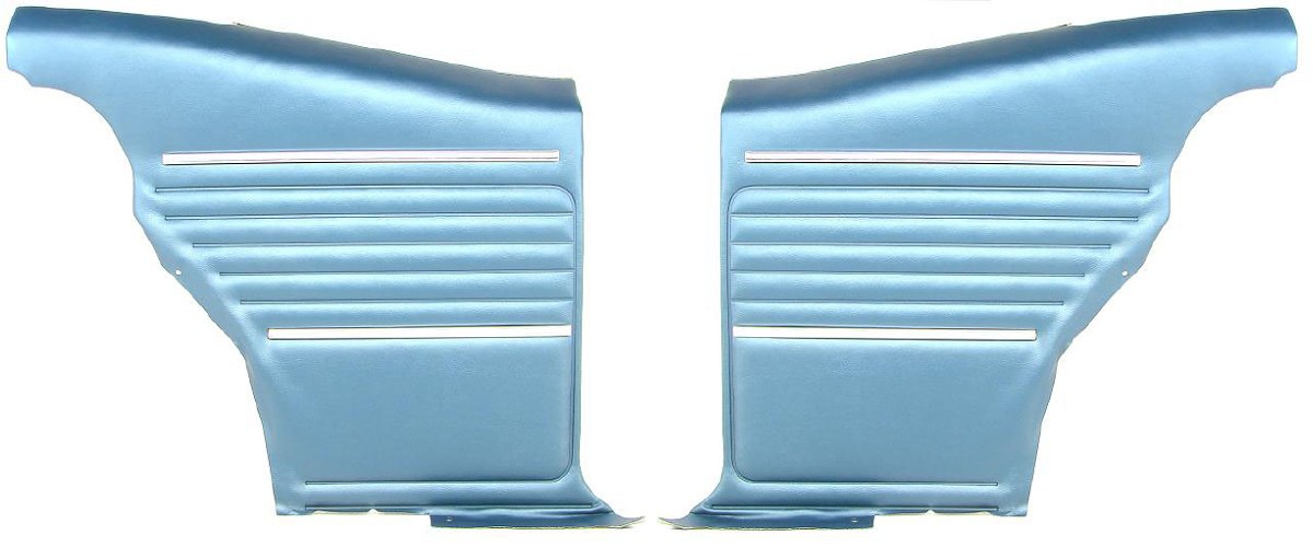 | Description | Camaro coupe pre-assembled medium blue rear quarter trim panels for standard interior. These pre-assembled rear quarter trim panels come with chrome-like trim moldings and an ABS hard plastic top panel. All pre-assembled door panel and rear interior trim panels come with high quality windowfelts pre-installed. Panels are manufactured from correct Madrid grain. Our pre-assembled rear quarter trim panels are produced by one of the industry's leading manufacturers. Heartbeat City recommends PUI's door panels, rear panels and seat covers whenever possible. We are proud to offer their products on our website. All of our seat covers and door panels are Manufactured in the USA! NOTE: If you want the finest quality door and quarter trim panels available, please see our OE Style door and quarter trim panels. |