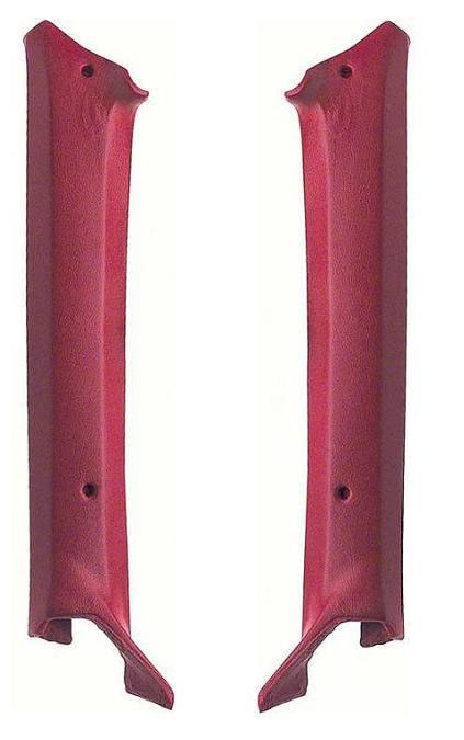| Description | Camaro coupe red inner pillar post padded moldings. Sold in pairs. Moldings are manufactured in polyurethane with correct Madrid grain and pre-punched mounting screw holes for easy installation. Officially Licensed GM Restorations Parts. |