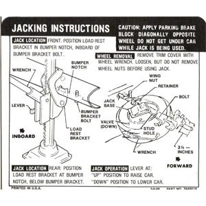 | Description | Camaro jacking instructions decal, coupe. Replaces original GM part# 3984091. Officially Licensed GM Restoration Part. Printed in the USA! |