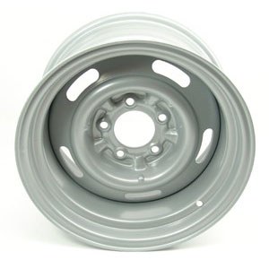 | Description | Chevrolet 15x8 Rally wheel rim, brand new OE Quality! Now you can replace your bent, rusty, or damaged factory rally wheel with this high quality American made reproduction. Wheel is powder coated in original Argent silver for that correct appearance and installs on cars with factory disc or drum brakes. Wheel measures 15" tall by 8" inside wheel lip to wheel lip and 9" from outside lip to outside lip. The lug pattern is 5 x 4-3/4" with 4" back spacing. Center caps, trim rings and lug nuts are not included and sold separately. Heartbeat City offers a variety of wheel trim rings and wheel center caps in NOS GM, import replacement, OE style reproduction, and restored "Assembly Line Correct" original GM trim rings. Applications: 1967-1981 Camaro, 1967-1981 Corvette, 1968-1979 Chevy II Nova, 1964-1972 Chevelle & El Camino, 1970-1977 Monte Carlo, 1964-1979 Full Size Chevrolet. |