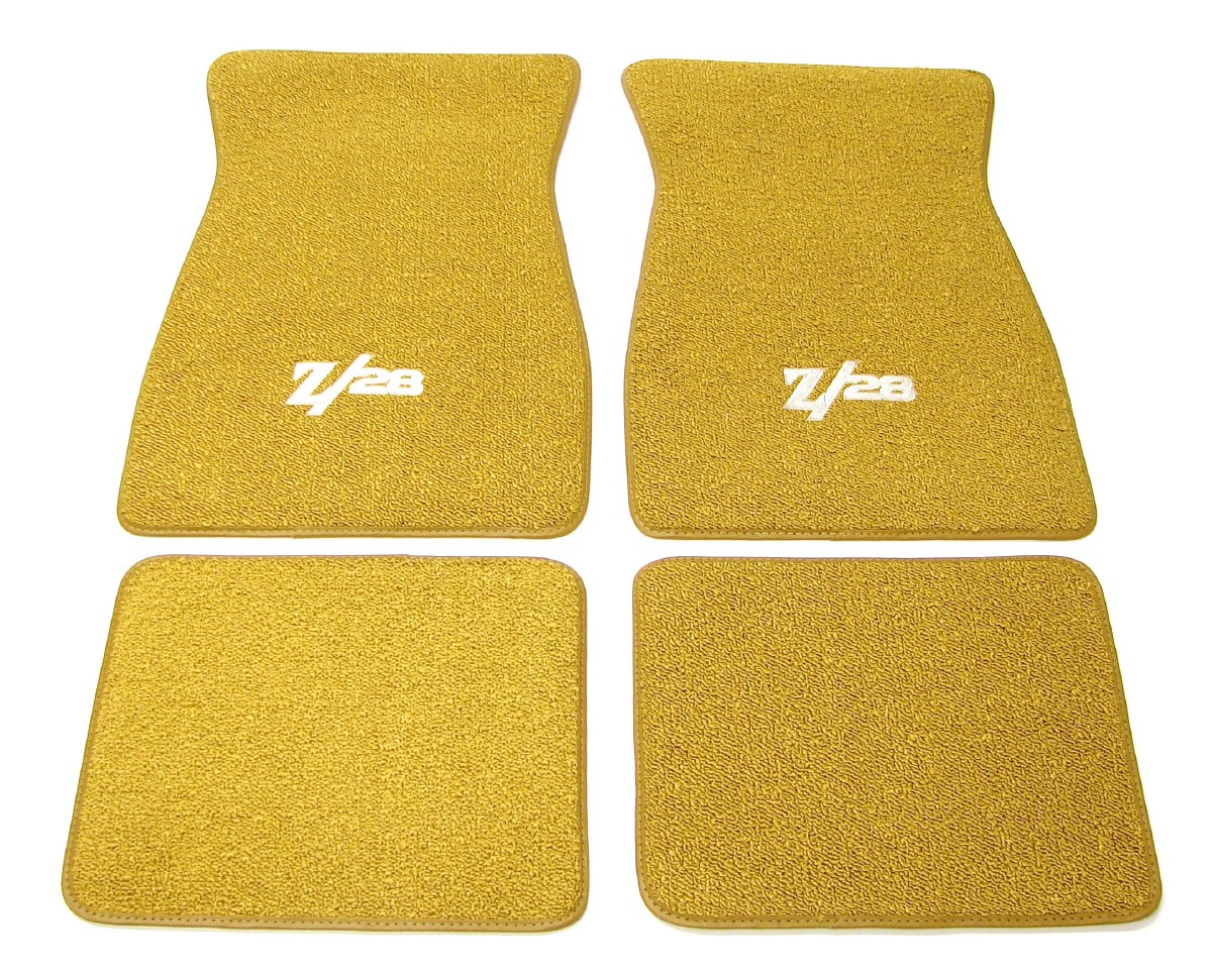 | Description | Camaro Z/28 black carpeted floor mats with embroidered red Z/28 logo. Floor mats are manufactured using the same high quality 80/20 rayon-nylon blend as our molded carpet sets. Color keyed style with thick, skid resistant rubber backing. Made in the USA! Officially Licensed GM Restorations Parts. |
