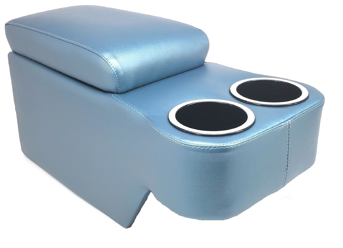 | Description | Camaro custom Saddle style light blue console. If you already have a console and want a little added storage space or perhaps a pair of cup holders with a padded armrest, this is the console for you. The inside of the console features a fully flocked compartment with an exterior covered in premium vinyl upholstery to match your factory color. This unit offers fast and easy installation. Simply set it down over your existing factory console and you are done. Made in America! No holes to drill or alterations to your original console. |