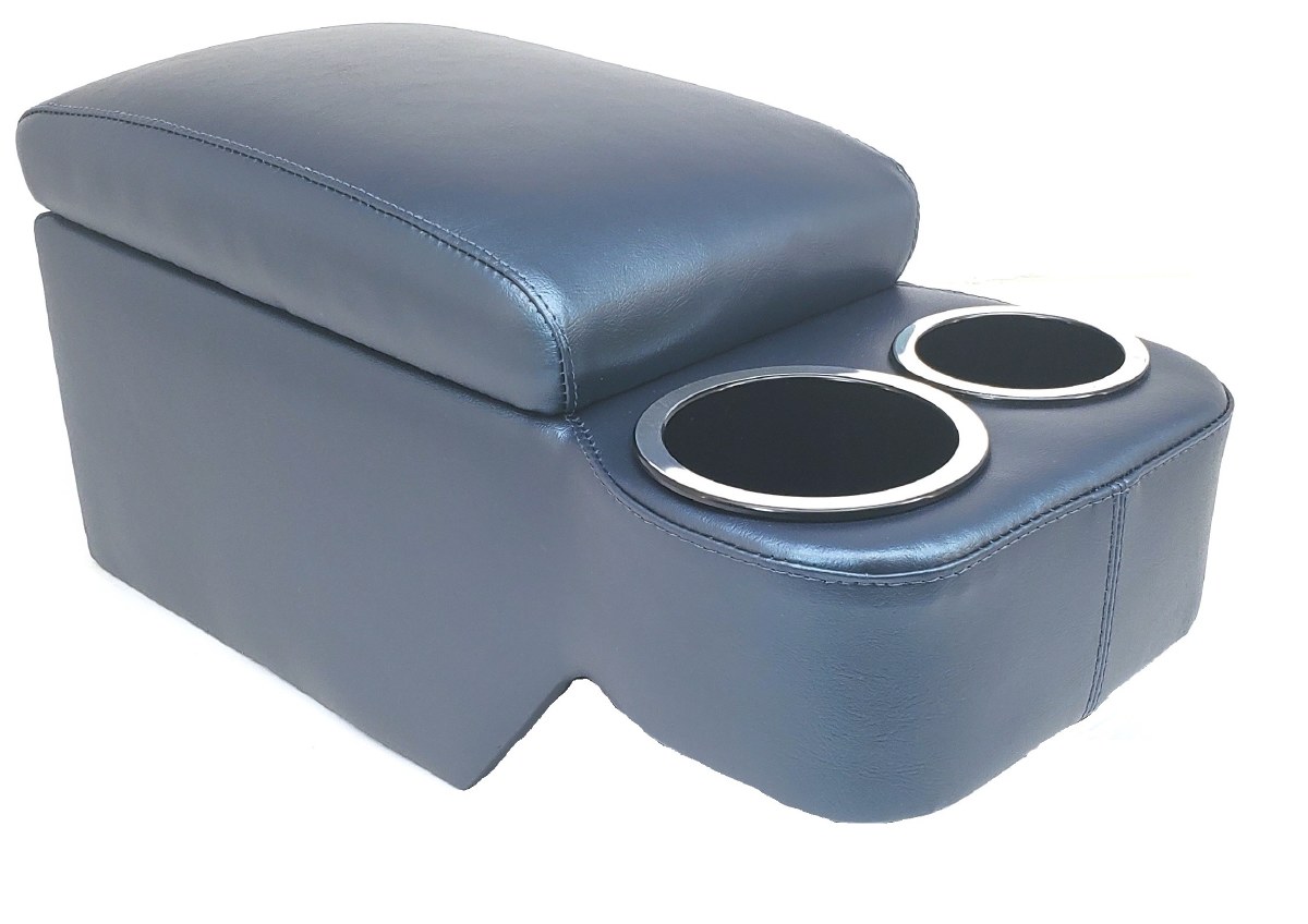 | Description | Camaro custom Humphugger style dark blue console. If you don't already have a factory console and want a little added storage space or perhaps a pair of cup holders with a padded armrest, this is the console for you. The inside of the console features a fully flocked compartment with an exterior covered in premium vinyl upholstery to match your factory color. This unit offers fast and easy installation. Simply set it down over your floor tunnel and you are done. It's that easy to install. No holes to drill or alterations to your original floor pan or carpet. |