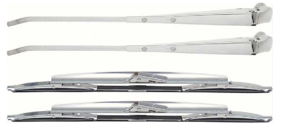 | Description | Camaro wiper arm and Aero blade kit, coupe, with brushed finish. These are excellent reproductions of the original Aero style wiper blades and arms. This kit comes with the 15 inch brushed blades and features the original Aero design used on many Camaros and Firebirds from 1967-1969. The Aero design was used to hold the rubber against the glass for a better wipe and reduce blade lift at highway speeds. TECH TIP: Do not install wiper arms on a painted or freshly painted car without first checking the orientation of the wiper motor transmission and the travel of the wiper pivots. If you installed the wiper transmission arm 180 degrees off, the arms will slip down and possibly scratch your freshly painted cowl vent panel. Always test wiper motor function with arms removed first. |