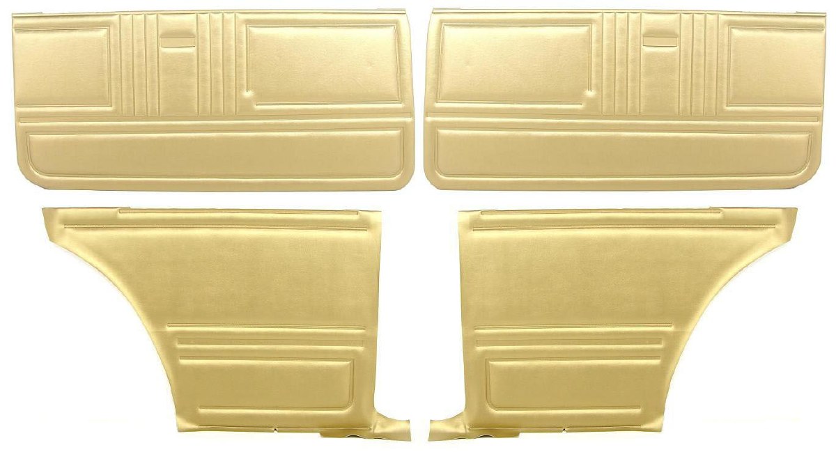 | Description | Camaro coupe gold standard interior front door panels and rear side panel kit. Unassembled economy versions. Door panels and rear side panels are manufactured from Madrid grain vinyl with correct stitch pattern bar dielectrically sealed into the panel. Our superior quality door panels are produced by one of the industry's leading manufacturers. Heartbeat City recommends PUI's door panels and seat covers whenever possible. We are proud to offer their products on our web site. All of our seat covers and door panels are Manufactured in the USA! Heartbeat City offers 3 different levels of interior door panels and rear side trim panels. Basic door panels: Unassembled panels which require all moldings, window felts, trim and emblems. Pre-assembled door panels (PAD): which includes moldings, Mylar trim and pre-installed window felts. Pre-assembled Platinum Edition door panels (PED) OE: Finest quality pleating, detail and hard ribbing as original. These panels also include moldings, window felts, Mylar trim, and a far more OE appearance. Note: Emblems are not included with any door panels due to GM Licensing fees associated with selling the entire door panel with emblems installed as opposed to offering the emblems individually. |