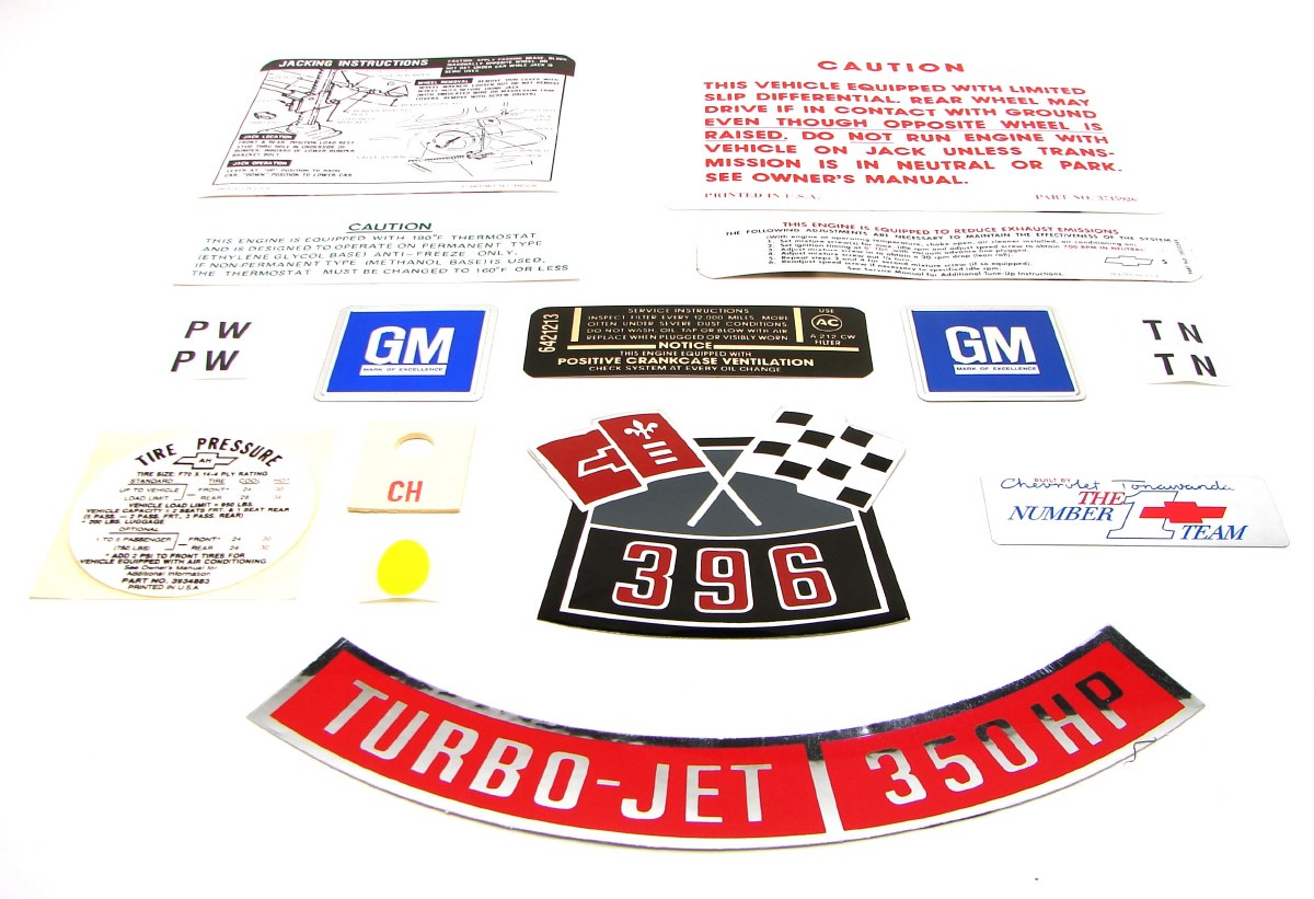 | Description | 1968 Camaro SS 396-350 hp coupe decal kit for cars with manual transmission.This decal kit is assembled for your convenience. All major decals are included. Decals for specific options such as Air Conditioning and or leaf spring and coil springs are offered seperately on this website. All decals with AC Delco or GM trademarks or copyrights are Officially Licensed GM Parts. All decals are Manufactured in the USA! |