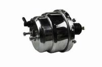 | Description | Slimline Dual diaphragm 7" Chrome power brake booster. Our Slimline 7" power brake booster gives you 25-35% more power assist than the equivalent single diaphragm versions. This brake booster works nicely with a big block Chevrolet engine and tall aftermarket valve covers. |