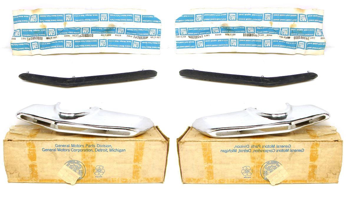 | Description | NOS 1967-1968 Camaro rear bumper guard kit. Kit includes guards, rubber inserts, and hardware. |