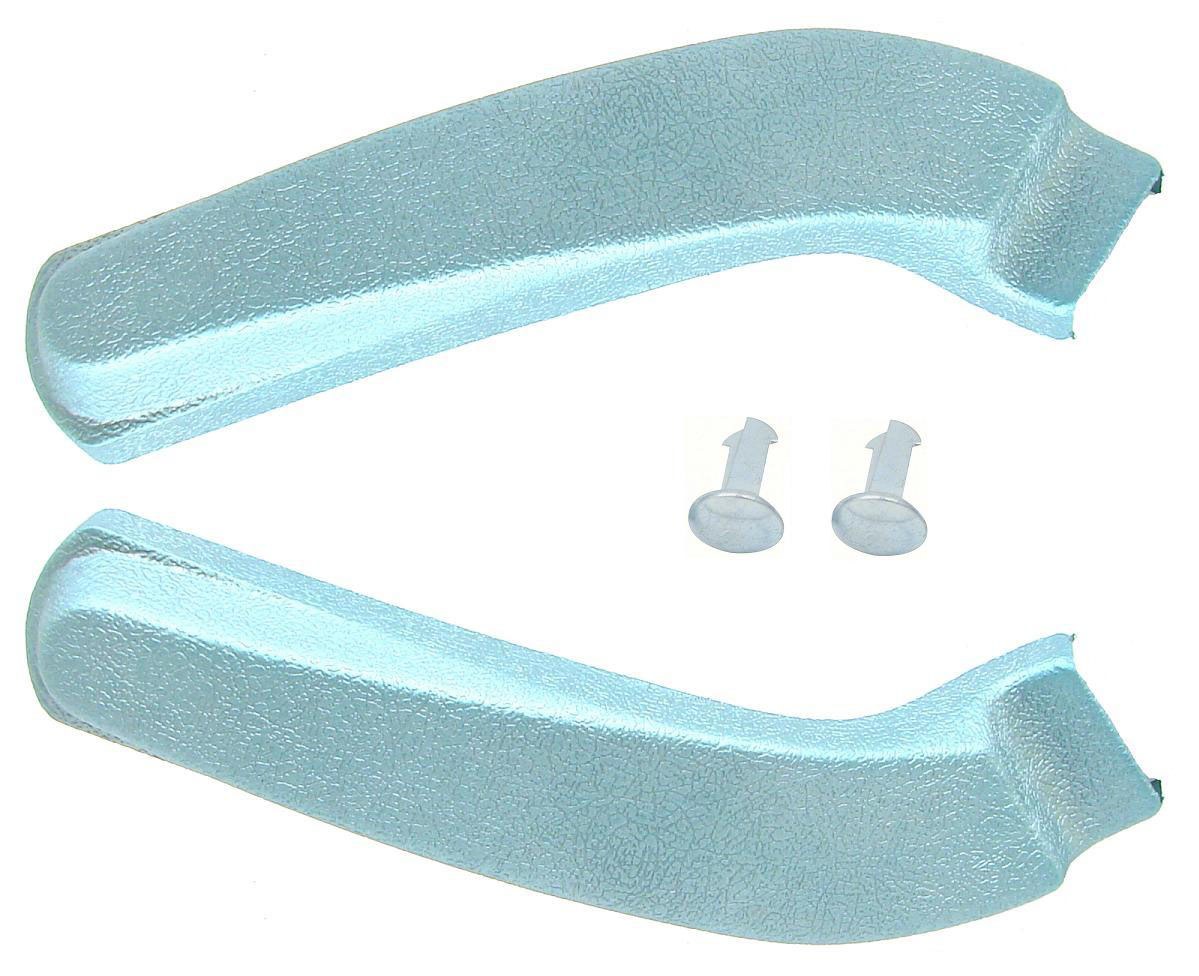 | Description | 1967 Camaro & Firebird front bucket seat side hinge covers, turquoise. High quality injection molded with UV protection and original Madrid grain pattern. Hinge covers fit over seat back to seat bottom pivots. Each kit includes one seat set. 2 kits required per car. Special installation fastener clips are included. Officially Licensed GM Restorations Parts. NOTE: Heartbeat City has taken the finest reproduction black bucket seat hinge covers and painted them with the correct color coded interior paint. This allows our clients an opportunity to purchase colored bucket seat hinge covers currently available in only black. This service works great for our clients who don't have the ability to paint their parts and to our friends in other countries who can't ship or obtain the correct interior paint locally. |