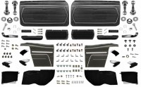 | Description | 1969 Camaro Convertible Monster Black standard interior kit. This is the premium interior kit of the three different interior kits that Heartbeat City offers. Kit includes: standard interior front & rear seat covers, USA made bucket seat foams (American Cushion Industries), OE style bucket seat backs (color matching), bucket seat hinge covers (color matching), headrest assemblies (best quality), complete bucket seat restoration hardware kit including knobs, seat adjuster springs, seat back latches, all required hardware, seat back rubber bumpers & screws, OE style pre-assembled standard interior front door panels with pre-installed window felts, Camaro door panel emblems, OE style pre-assembled convertible rear side panels with pre-installed window felts, armrest bases and vinyl covered armrest pads, front & rear door panel guides with fuzzy, door glass guides with felt, interior door handles, chrome door lock knobs, ferrules are installed on door panels, door panel water shields, OE style plastic backed dash pad, padded pillar post pads, original style molded 80/20 loop 2 piece front & rear carpet set, plastic firewall carpet guard, OE style sound deadener, trunk divider panel without insulation, high quality OE style sunvisors, sunvisor tips & sleeves, assembly line correct front & rear window cranks, window crank springs & washers, door jamb wind lace (black only), and a pair of technically correct USA made "Body by Fisher" door sill plates, 12 oz can of acrylic lacquer interior paint, interior rear view mirror, convertible sunvisor brackets, (2) bucket seat lower spring repair kits,plastic door jamb vent assemblies, rear armrest ashtray assemblies with inserts, door panel water shield installation caulk, steering column to carpet guard rubber seal, and complete interior screw kit which includes 291 pieces individually packaged for your convenience........................"Interior Screw Kit" includes assembly line correct fasteners to attach the following: Air outlet bezels, air vents in door jambs, armrest base & pads, ashtray retainer, coat hooks, console & door & hinge & lamps, courtesy lamps, dash pad, dimmer switch, dome lamp, door panels, door handles, door pull straps, firewall insulation pad, glove box door & latch & liner, grab bar, heater control, instrument cluster, kick panels, mirror, nameplates, pillar moldings, quarter window glass weatherstrips, quarter trim panels, radio trim panels, radio control shafts, sill plates, rocker cover harness plates, seat back bumpers and strikers, seat back cables seat back panels, rear seat to body, seat pivot clips & covers, seat tracks, floor shifter plate, shoulder harness retainers, steering column to dash, & cover, steering column to firewall, steering wheel shroud, sunvisor brackets & clamps, turn signal lever, window cranks. |