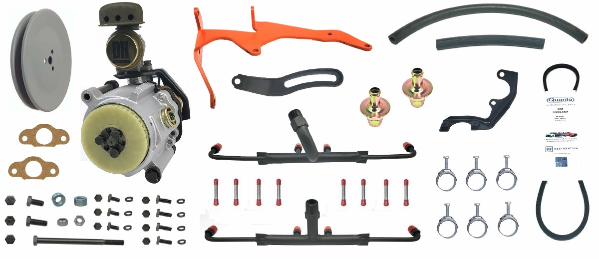 | Description | 1968 Camaro Z/28 302-290 HP Complete smog system. This unit is complete and comes with a restored original dated (We have several different dates) 1968 GM smog pump, a restored original GM 1968 Z/28 "DH" diverter valve, a pair of original GM check valves, a pair of "Assembly Line Correct" 1968 Z/28 smog tubes, original GM smog pump bracket, original GM diverter valve & adjuster brackets, and a USA made correct GM #522 deep groove smog pump pulley, New set of reproduction hoses and tower clamps, new original supplier mounting hardware set, and a new reproduction USA made smog pump belt. You can view installation instructions and procedures in the 1968 Camaro Factory Assembly Manual under section UPC Z28 A4. Applications: 1968 Camaro Z/28 302-290 HP. |