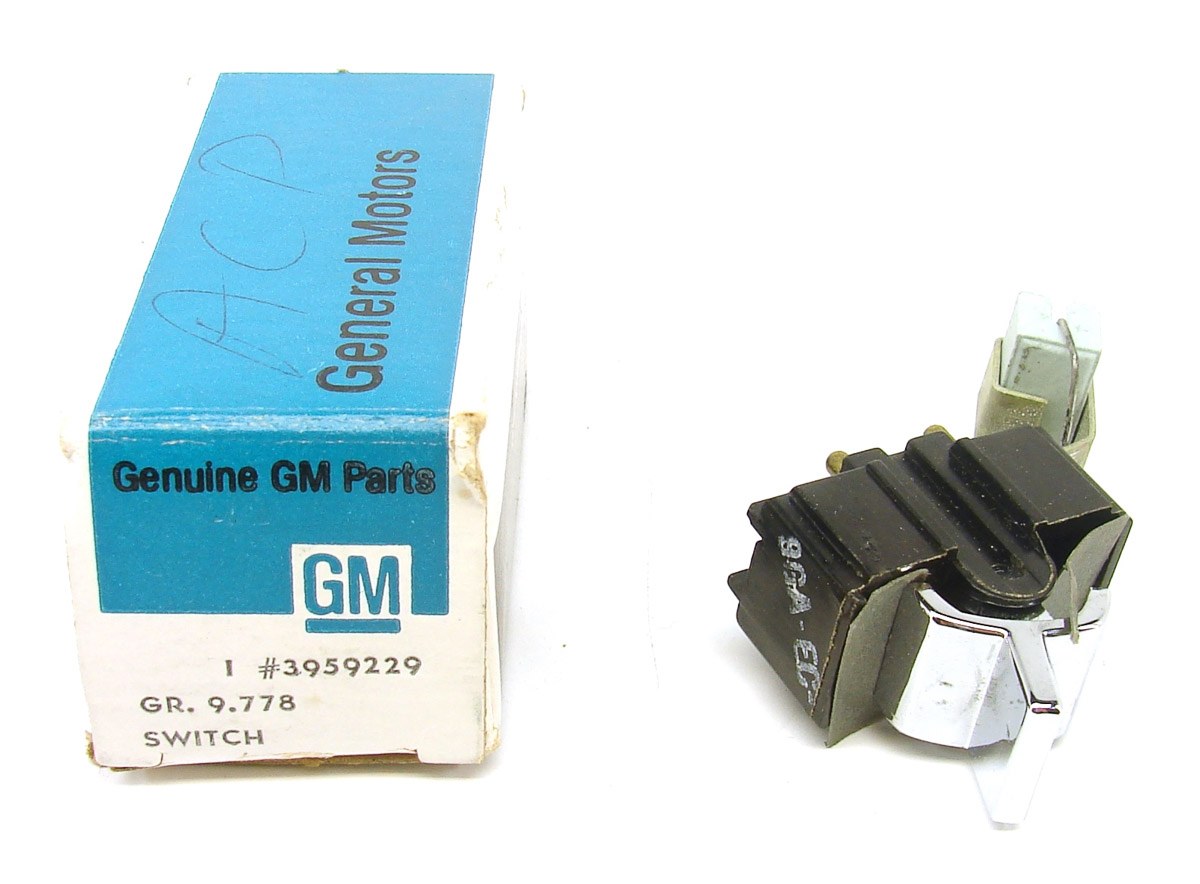 | Description | NOS Original rear window defroster switch. These are not reproduced and they are hard to find. GM# 3959229. The NOS Bezel is available under NOS-1978. |
