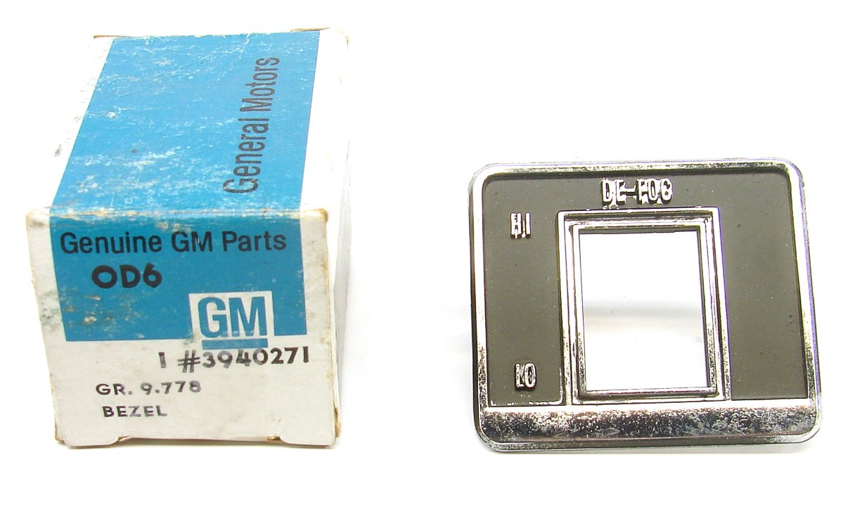 | Description | NOS Original rear window defroster switch bezel. These are not reproduced and they are hard to find. GM# 3940271. The NOS switch is available under NOS-1975. |