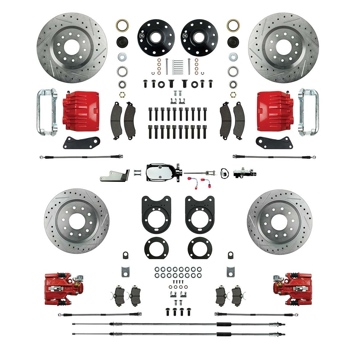 | Description | Signature Series Big Brake Conversions with the Chrome Package Upgrade offer performance and style in one comprehensive kit. Upgrades abound with this product chrome booster & master assembly front twin piston calipers with clean visible branding drilled and slotted rotors for extreme performance and of course stainless brake hoses. |