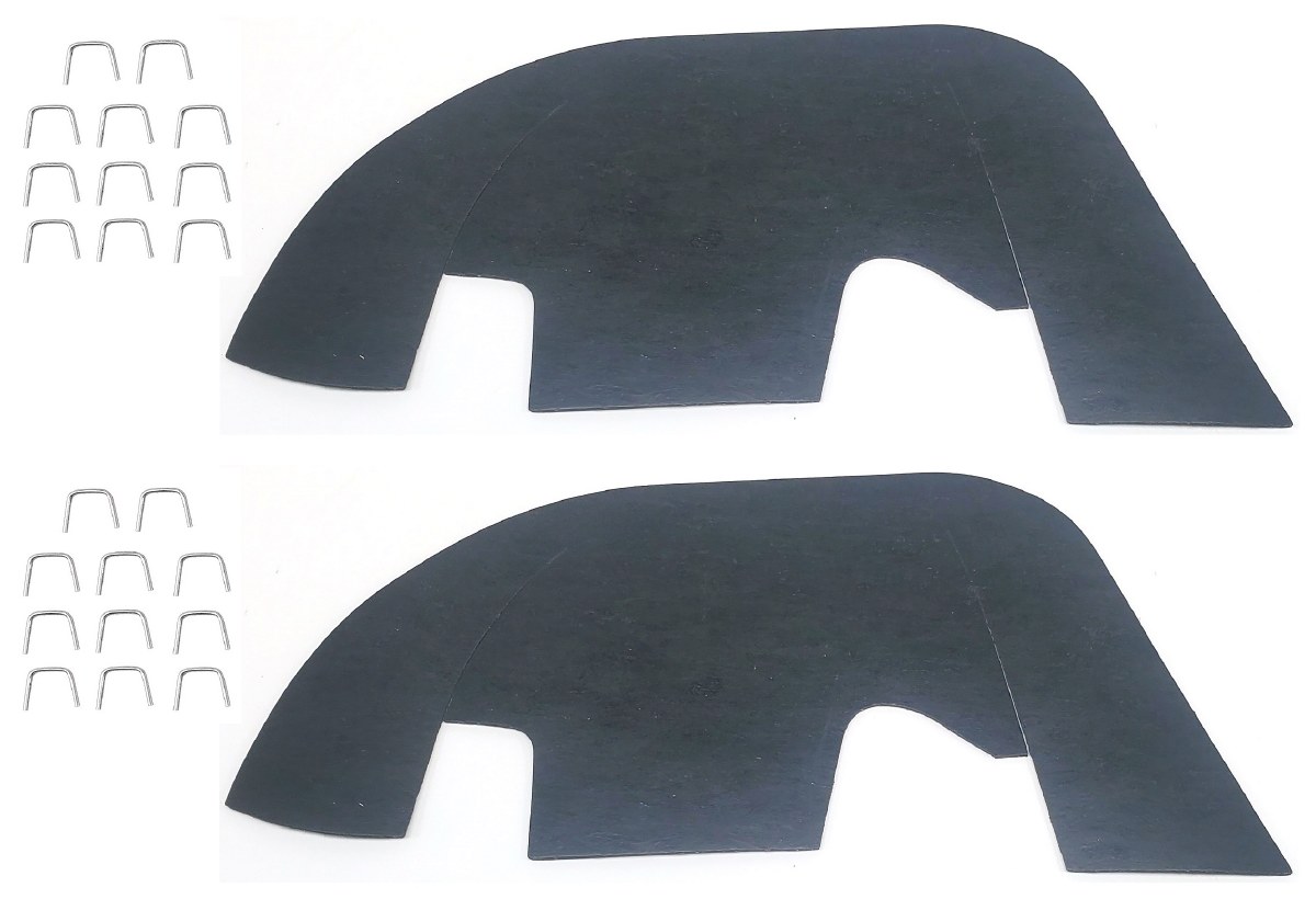 | Description | Front fender well upper control A-arm splash shield kit with staples. "Assembly Line Correct". For models with plastic front fender wells. Die cut raised perforated material for a perfect fit. Made in the USA! The Factory Assembly Manual shows an excellent illustration in UPC 11/13 A4. Applications: 1969-1972 Chevelle & El Camino. |