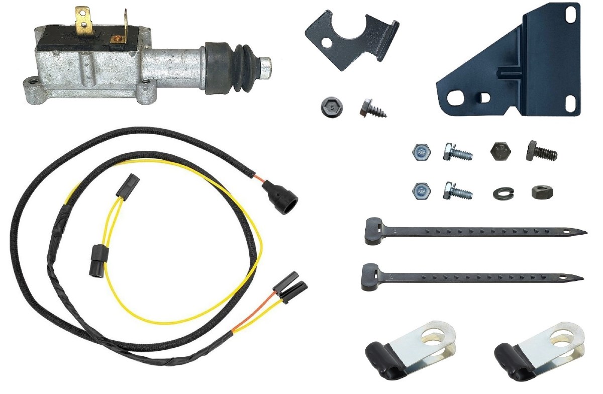 | Description | 1967 Camaro 396-325 HP Complete kickdown assembly with original GM (used) switch. This kit gives you everything you need to install the Turbo 400 kickdown assembly just like General Motors did on the factory line. This kit includes GM# 1993388 Switch, bracket GM# 3909630, lever GM# 3910364, screw GM# 9419320, wiring harness straps GM# 9422033 (2), screw for switch to bracket GM# 423595 (2), wiring harness assembly GM# 2989257, wiring harness clips to bellhousing bolt GM# 2404001 (2). The 1967 Camaro Factory Assembly Manual shows an excellent illustration with instructions under UPC M40 A8 & A9. Applications: 1967 Camaro 396-325 HP. |