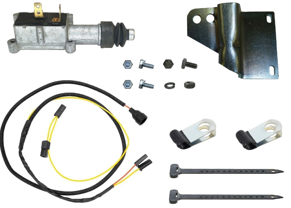 | Description | 1967 Camaro 396-375 HP Complete kickdown assembly with original GM (used) switch. This kit gives you everything you need to install the Turbo 400 kickdown assembly just like General Motors did on the factory line. This kit includes GM# 1993388 Switch, bracket GM# 3981565 , lever GM# 3910364, screw GM# 9419320, wiring harness straps GM# 9422033 (2), screw for switch to bracket GM# 423595 (2), wiring harness assembly GM# 2989257, wiring harness clips to bellhousing bolt GM# 2404001 (2). The 1967 Camaro Factory Assembly Manual shows an excellent illustration with instructions under UPC M40 A8 & A9. Applications: 1967 Camaro 396-375 HP. |